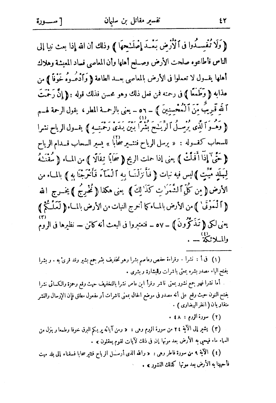 (4) الآية 9 من سورة فاطر وهي: وَاللَّهُ الَّذِي أَرْسَلَ الرِّياحَ فَتُثِيرُ سَحاباً فَسُقْناهُ إِلى بَلَدٍ مَيِّتٍ فَأَحْيَيْنا بِهِ الْأَرْضَ بَعْدَ مَوْتِها كَذلِكَ النُّشُورُ.