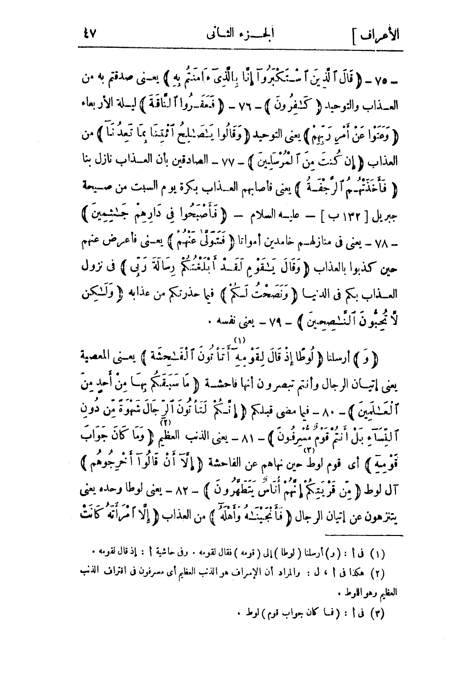 (2) هكذا فى أ، ل: والمراد أن الإسراف هو الذنب العظيم أى مسرفون فى اقتراف الذنب العظيم وهو اللوط.