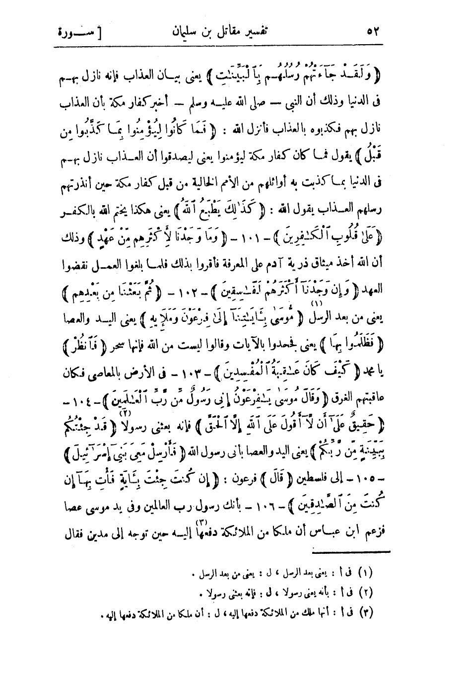 وَلَقَدْ جاءَتْهُمْ رُسُلُهُمْ بِالْبَيِّناتِ يعني بيان العذاب فَإنَّهُ نازل بهم فِي الدُّنْيَا وذلك أن النَّبِيّ- صَلَّى اللَّهُ عَلَيْهِ وسلم- أخبر كفار مكة بأن العذاب نازل بهم فكذبوه بالعذاب فأنزل اللَّه: فَما كانُوا لِيُؤْمِنُوا بِما كَذَّبُوا مِنْ قَبْلُ يَقُولُ فَمَا كان كفار مكة ليؤمنوا يعني ليصدقوا أن العذاب نازل بهم فِي الدُّنْيَا بما كذبت به أوائلهم من الأمم الخالية من قبل كفار مكة حين أنذرتهم رسلهم العذاب يقول الله: كَذلِكَ يَطْبَعُ اللَّهُ يعني هكذا يختم اللَّه بالكفر عَلى قُلُوبِ الْكافِرِينَ- 101- وَما وَجَدْنا لِأَكْثَرِهِمْ مِنْ عَهْدٍ وذلك أن اللَّه أَخَذَ ميثاق ذرِّيَّة آدم عَلَى المعرفة فأقروا بِذَلِك فَلَمَّا بلغوا العمل نقضوا العهد وَإِنْ وَجَدْنا أَكْثَرَهُمْ لَفاسِقِينَ- 102- ثُمَّ بَعَثْنا مِنْ بَعْدِهِمْ يعني من بعد الرسل «1» مُوسى بِآياتِنا إِلى فِرْعَوْنَ وَمَلَائِهِ