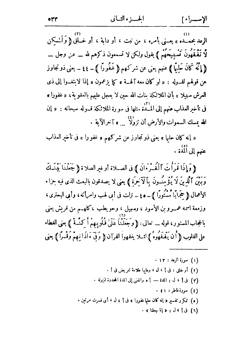 (5) تكرر تفسير «إِنَّهُ كانَ حَلِيماً غَفُوراً» فى أ، ل، أى فسرت مرتين.