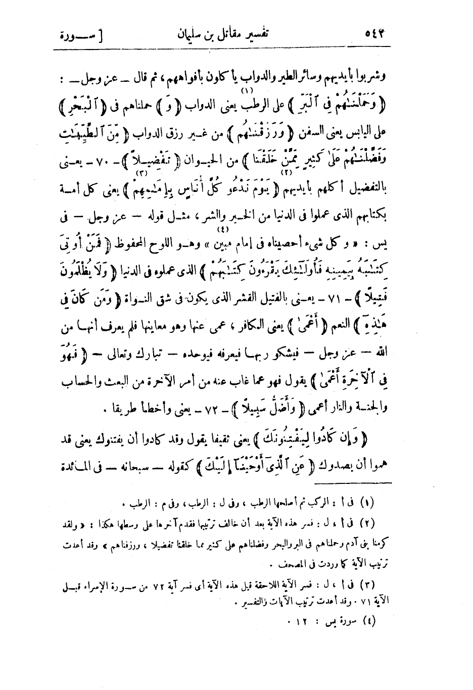 (3) فى أ، ل: فسر الآية اللاحقة قيل هذه الآية أى فسر آية 72 من سورة الإسراء قبل الآية 71. وقد أعدت ترتيب الآيات والتفسير.