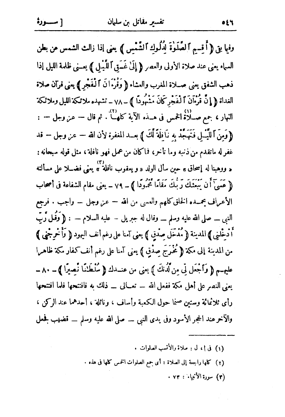 وفيما بقي أَقِمِ الصَّلاةَ لِدُلُوكِ الشَّمْسِ يعنى إذا زالث الشمس عن بطن السماء يعني عند صلاة الأولى والعصر إِلى غَسَقِ اللَّيْلِ يعني ظلمة الليل إذا ذهب الشفق يعني صلاة المغرب والعشاء وَقُرْآنَ الْفَجْرِ يعنى قرآن صلاة الغداة إِنَّ قُرْآنَ الْفَجْرِ كانَ مَشْهُوداً- 78- تشهده ملائكة الليل وملائكة النهار، جمع صلاة «1» الخمس في هذه الآية كلها «2» . ثم قال- عز وجل-: