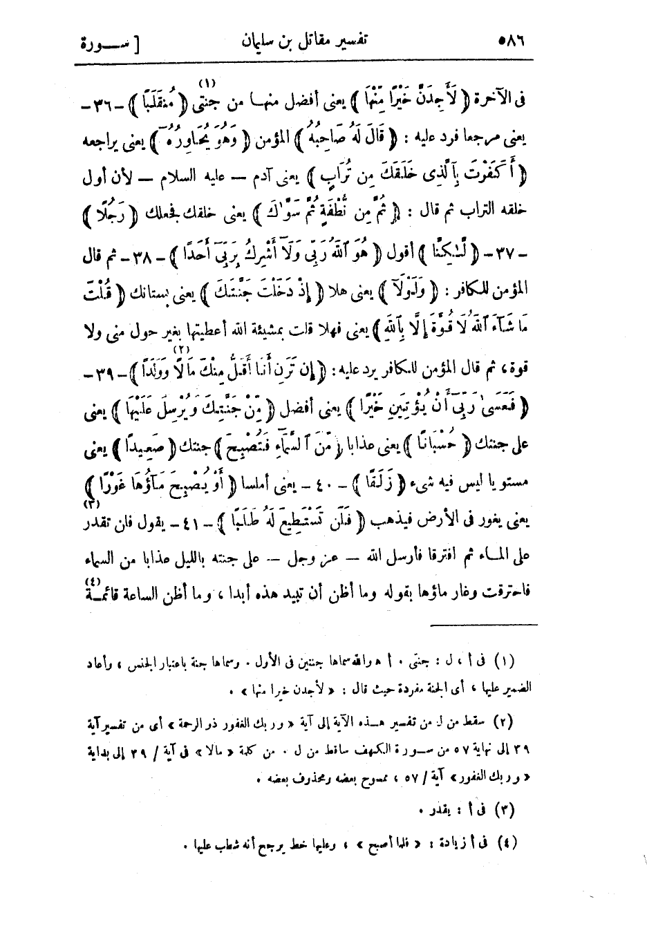 (2) سقط من ل من تفسير هذه الآية إلى آية «وَرَبُّكَ الْغَفُورُ ذُو الرَّحْمَةِ» أى من تفسير آية 39 إلى نهاية 57 من سورة الكهف ساقط من ل. من كلمة «مالا» فى آية/ 39 إلى بداية «وَرَبُّكَ الْغَفُورُ» آية/ 57، ممسوح بعضه ومحذوف بعضه.