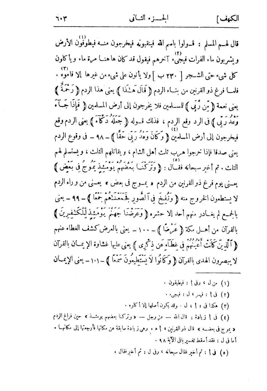 (4) فى ازيادة: قال الله- عز وجل- «وَتَرَكْنا بَعْضَهُمْ يَوْمَئِذٍ» حين فراغ الردم «يموج فى بعضه» قال ذو القرنين، اهـ. وهي زيادة سابقة عن مكانها فأرجعتها إلى مكانها.