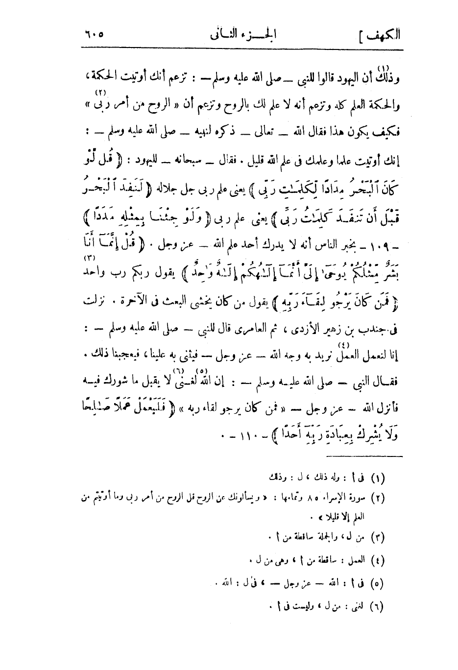 (2) سورة الإسراء 85 وتمامها: «وَيَسْئَلُونَكَ عَنِ الرُّوحِ قُلِ الرُّوحُ مِنْ أَمْرِ رَبِّي وَما أُوتِيتُمْ مِنَ الْعِلْمِ إِلَّا قَلِيلًا» .