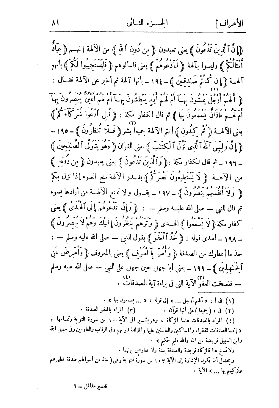 (4) المراد بالصدقات هنا الزكاة، وهو يشير الى الآية 60 من سورة التوبة وتمامها: