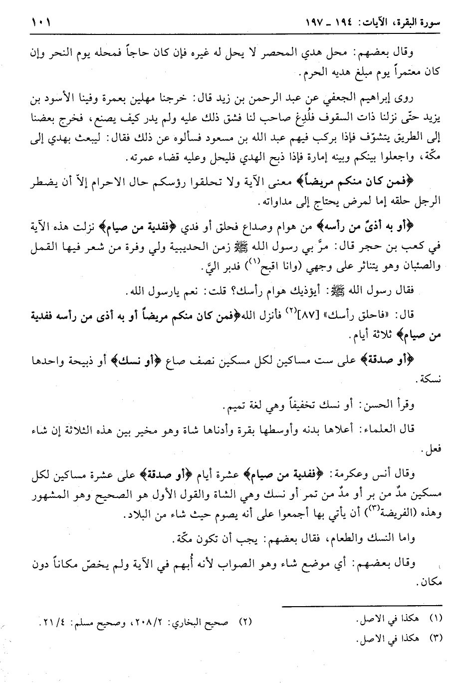 (2) صحيح البخاري: 2/ 208، وصحيح مسلم: 4/ 21.