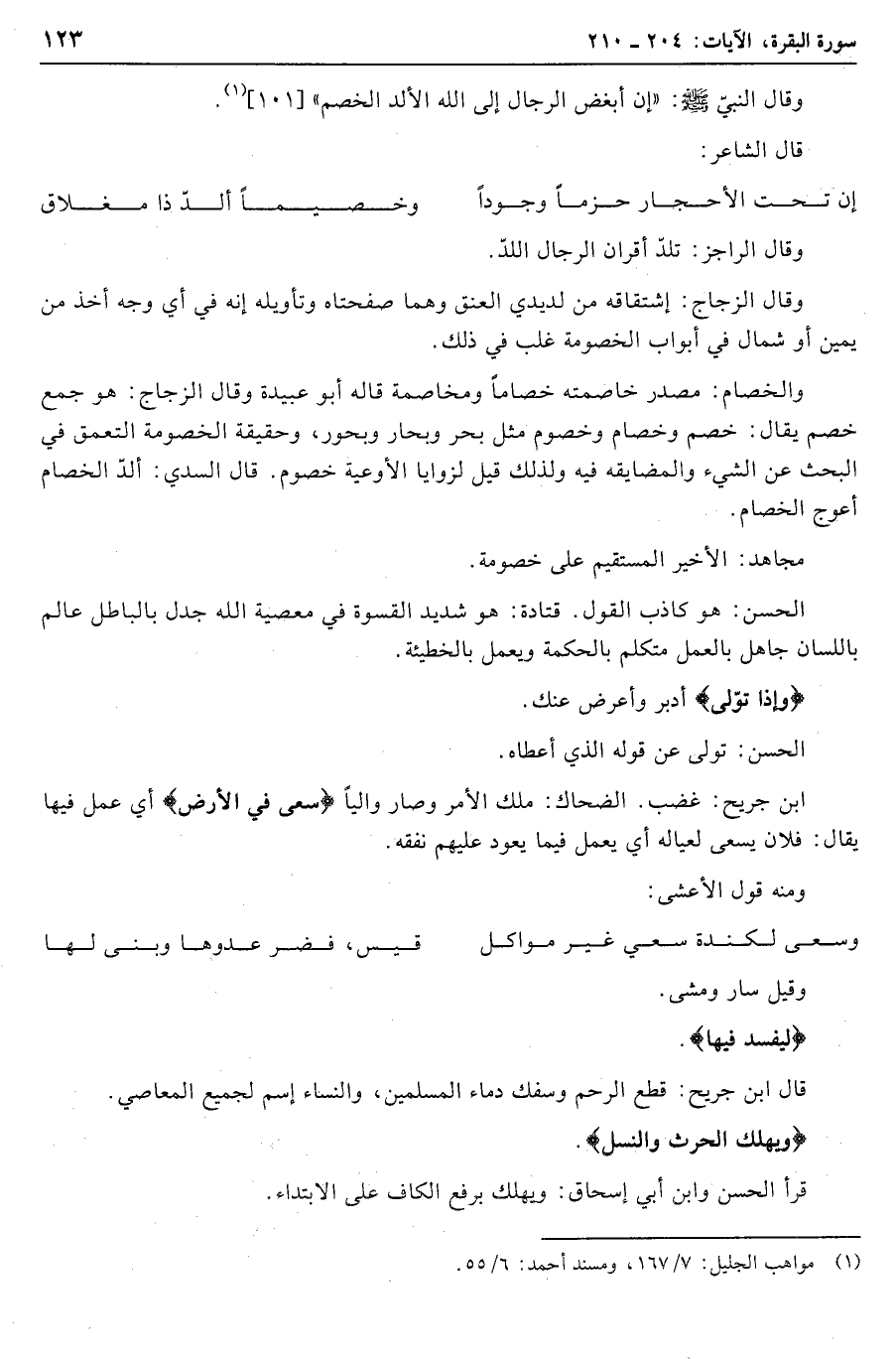 والخصام: مصدر خاصمته خصاما ومخاصمة قاله أبو عبيدة وقال الزجاج: هو جمع خصم يقال: خصم وخصام وخصوم مثل بحر وبحار وبحور، وحقيقة الخصومة التعمق في البحث عن الشيء والمضايقه فيه ولذلك قيل لزوايا الأوعية خصوم. قال السدي: أَلَدُّ الْخِصامِ أعوج الخصام.