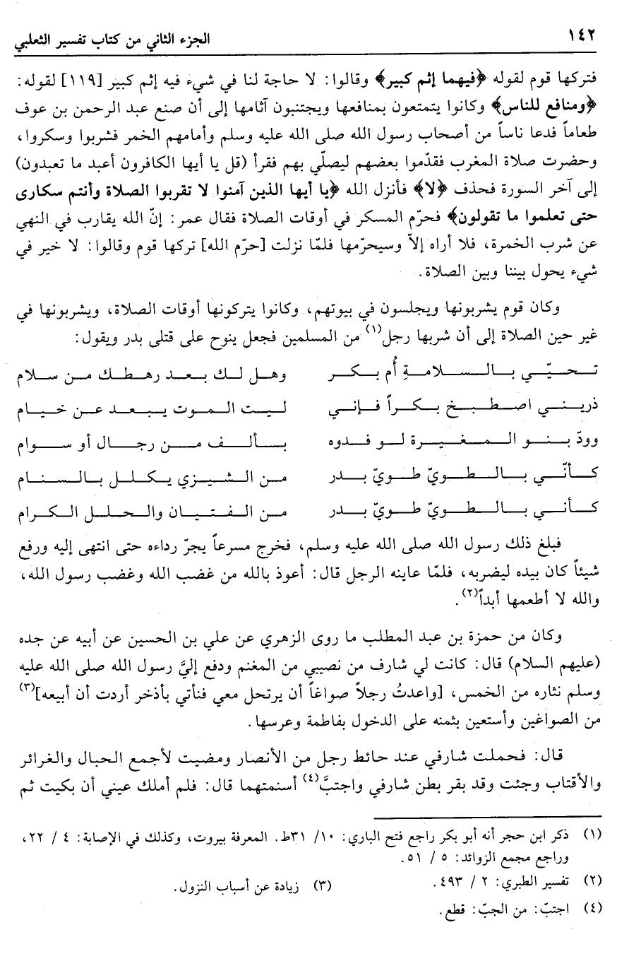 وكان قوم يشربونها ويجلسون في بيوتهم، وكانوا يتركونها أوقات الصلاة، ويشربونها في غير حين الصلاة إلى أن شربها رجل «1» من المسلمين فجعل ينوح على قتلى بدر ويقول: