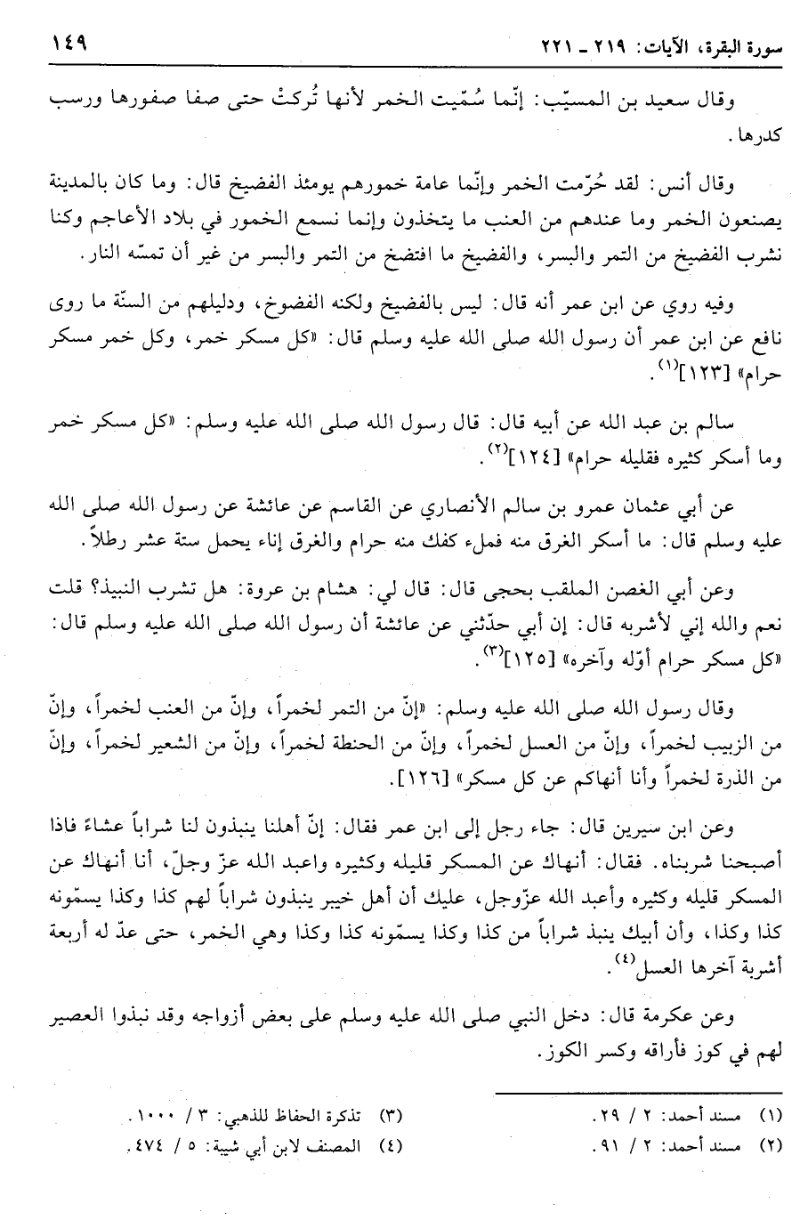 وقال رسول الله صلّى الله عليه وسلّم: «إنّ من التمر لخمرا، وإنّ من العنب لخمرا، وإنّ من الزبيب لخمرا، وإنّ من العسل لخمرا، وإنّ من الحنطة لخمرا، وإنّ من الشعير لخمرا، وإنّ من الذرة لخمرا وأنا أنهاكم عن كل مسكر» [126] .