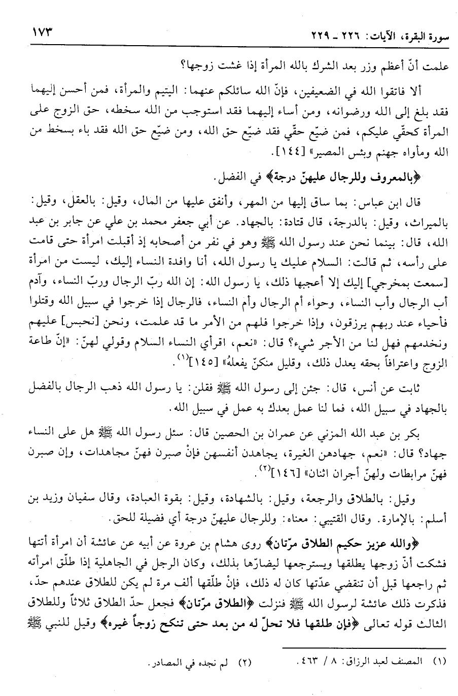 بِالْمَعْرُوفِ وَلِلرِّجالِ عَلَيْهِنَّ دَرَجَةٌ في الفضل.