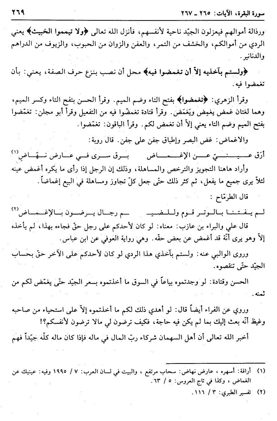 وروي عن الفراء أيضا قال: لو أهدي ذلك لكم ما أخذتموه إلّا على استحياء من صاحبه وغيظ أنّه بعث إليك بما لم يكن فيه حاجة، فكيف ترضون لي ما لا ترضون لأنفسكم؟! أخبر الله تعالى أن أهل السهمان شركاء ربّ المال في ماله فإذا كان ماله كلّه جيّدا فهم