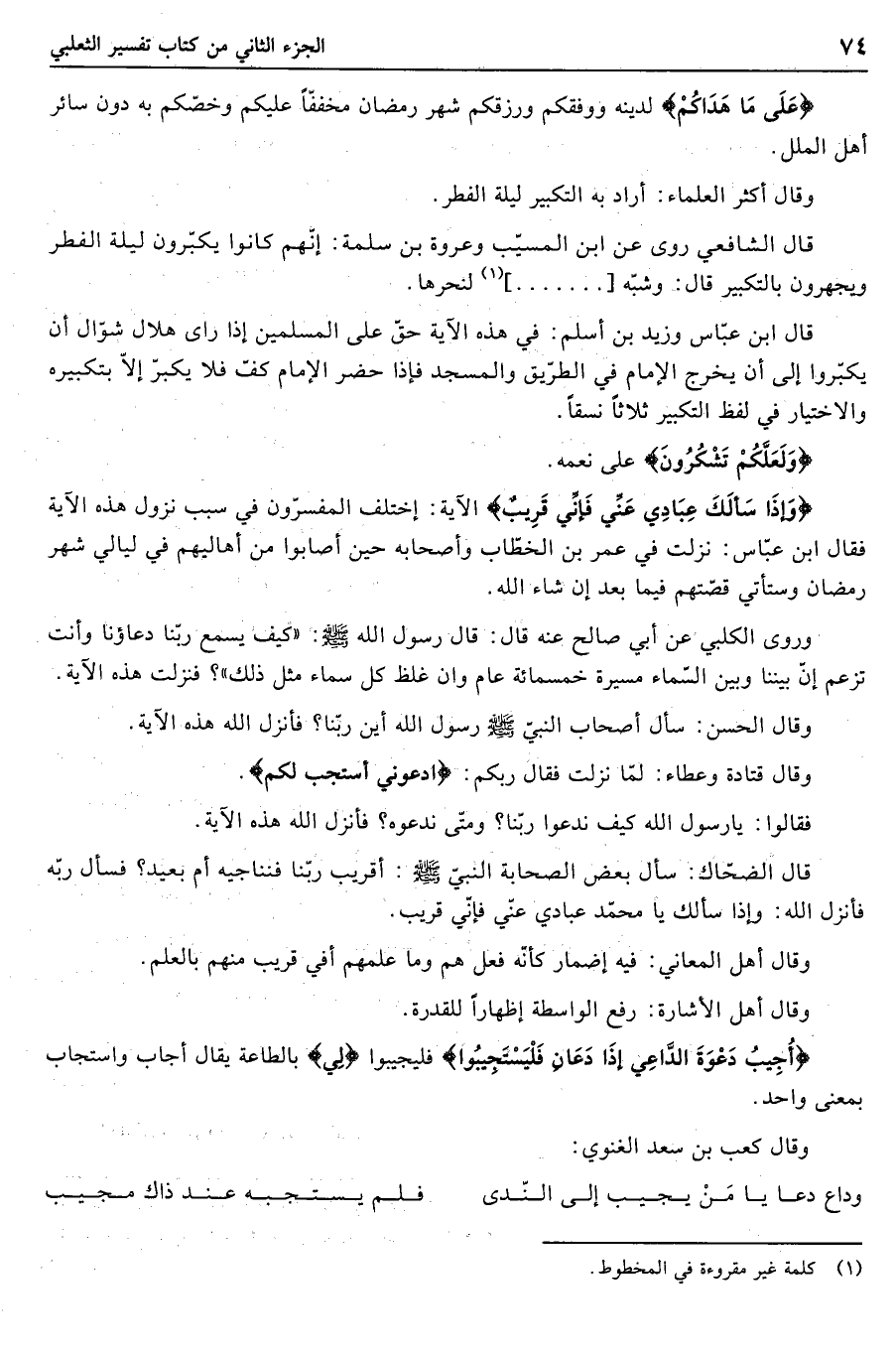 كتاب تفسير الثعلبي = الكشف والبيان عن تفسير القرآن (اسم الجزء: 2)