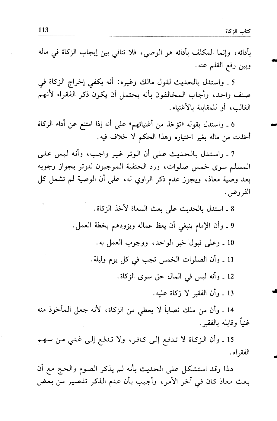 15 - وأن الزكاة لا تدفع إلى كافر ولا تدفع إلى غني من سهم الفقراء