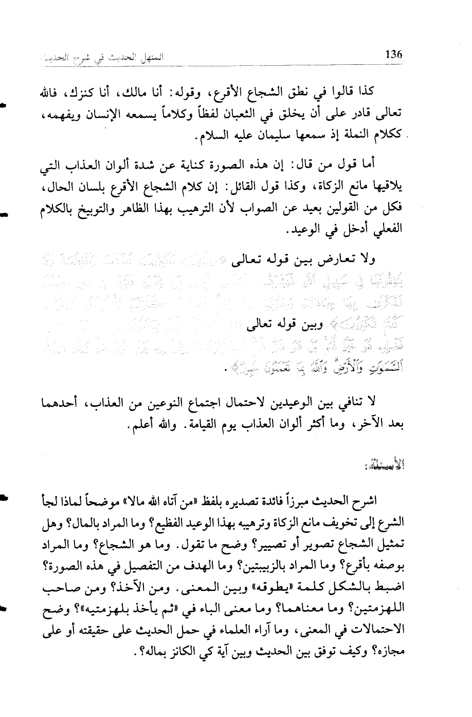 أما قول من قال: إن هذه الصورة كناية عن شدة ألوان العذاب التي يلاقيها مانع الزكاة، وكذا قول القائل: إن كلام الشجاع الأقرع بلسان الحال، فكل من القولين بعيد عن الصواب لأن الترهيب بهذا الظاهر والتوبيخ بالكلام الفعلي أدخل في الوعيد.