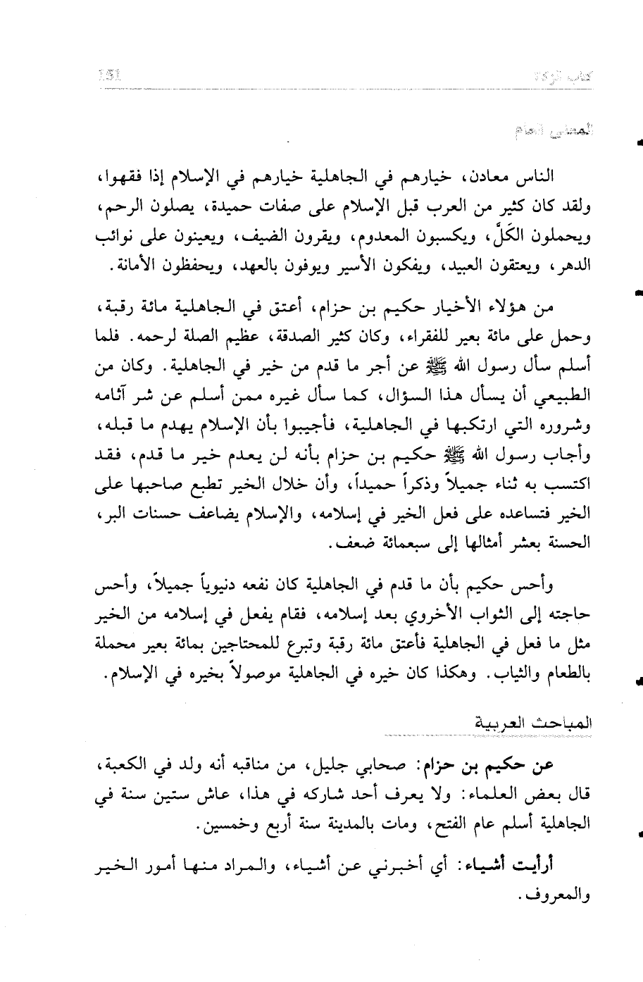 الناس معادن، خيارهم في الجاهلية خيارهم في الإسلام إذا فقهوا، ولقد كان كثير من العرب قبل الإسلام على صفات حميدة، يصلون الرحم، ويحملون الكل، ويكسبون المعدوم، ويقرون الضيف، ويعينون على نوائب الدهر، ويعتقون العبيد، ويفكون الأسير، ويوفون بالعهد، ويحفظون الأمانة.