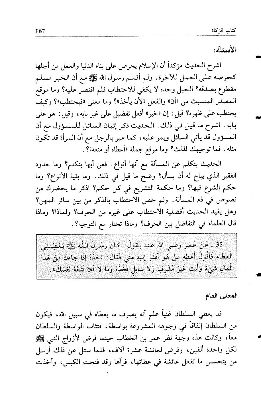35 - عن عمر رضي الله عنه يقول: كان رسول الله صلى الله عليه وسلم يعطيني العطاء فأقول أعطه من هو أفقر إليه مني فقال: "خذه إذا جاءك من هذا المال شيء وأنت غير مشرف ولا سائل فخذه وما لا فلا تتبعه نفسك".