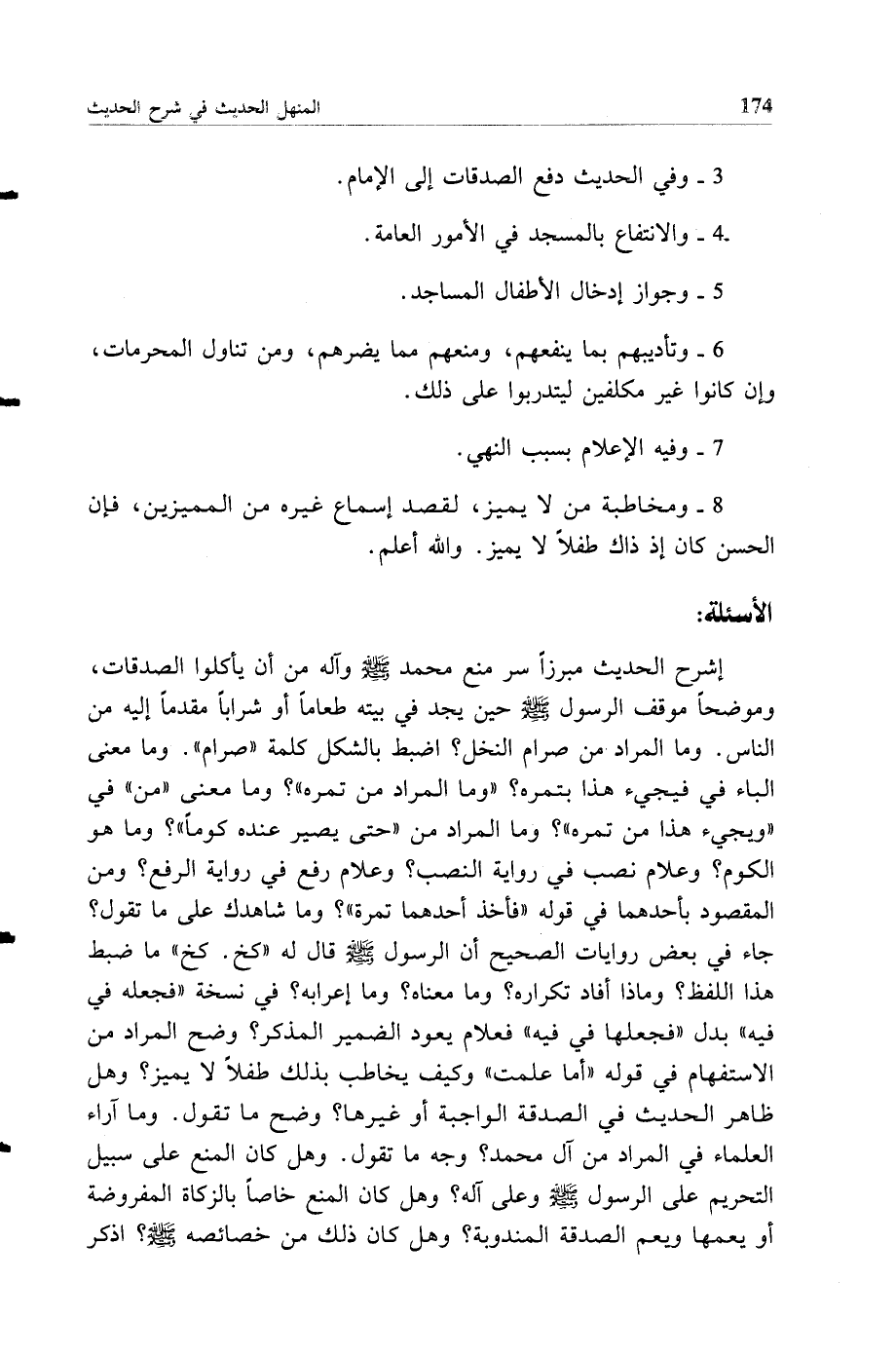 8 - ومخاطبة من لا يميز، لقصد إسماع غيره من المميزين، فإن الحسن كان إذ ذاك طفلا لا يميز. والله أعلم.