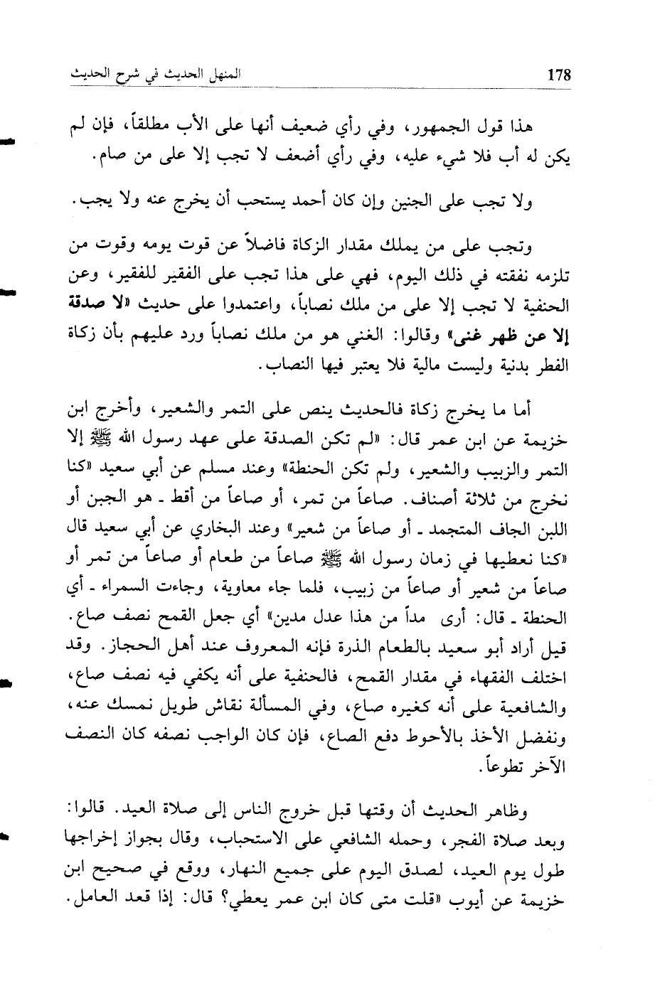 أما ما يخرج زكاة فالحديث ينص على التمر والشعير، وأخرج ابن خزيمة عن ابن عمر قال "لم تكن الصدقة على عهد رسول الله صلى الله عليه وسلم إلا التمر والزبيب والشعير، ولم تكن الحنطة" وعند مسلم عن أبي سعيد "كنا نخرج من ثلاثة أصناف. صاعا من تمر، أو صاعا من أقط -هو الجبن أو اللبن الجاف المتجمد -أو صاعا من شعير" وعند البخاري عن أبي سعيد قال "كنا نعطيها في زمان رسول الله صلى الله عليه وسلم صاعا من طعام أو صاعا من تمر أو صاعا من شعير أو صاعا من زبيب، فلما جاء معاوية، وجاءت السمراء -أي الحنطة -قال: أرى مدا من هذا عدل مدين" أي جعل القمح نصف صاع. قيل أراد أبو سعيد بالطعام الذرة فإنه المعروف عند أهل الحجاز. وقد اختلف الفقهاء في مقدار القمح، فالحنفية على أنه يكفي فيه نصف صاع، والشافعية على أنه كغيره صاع، وفي المسألة نقاش طويل نمسك عنه، ونفضل الأخذ بالأحوط دفع الصاع، فإن كان الواجب نصفه كان النصف الآخر تطوعا.