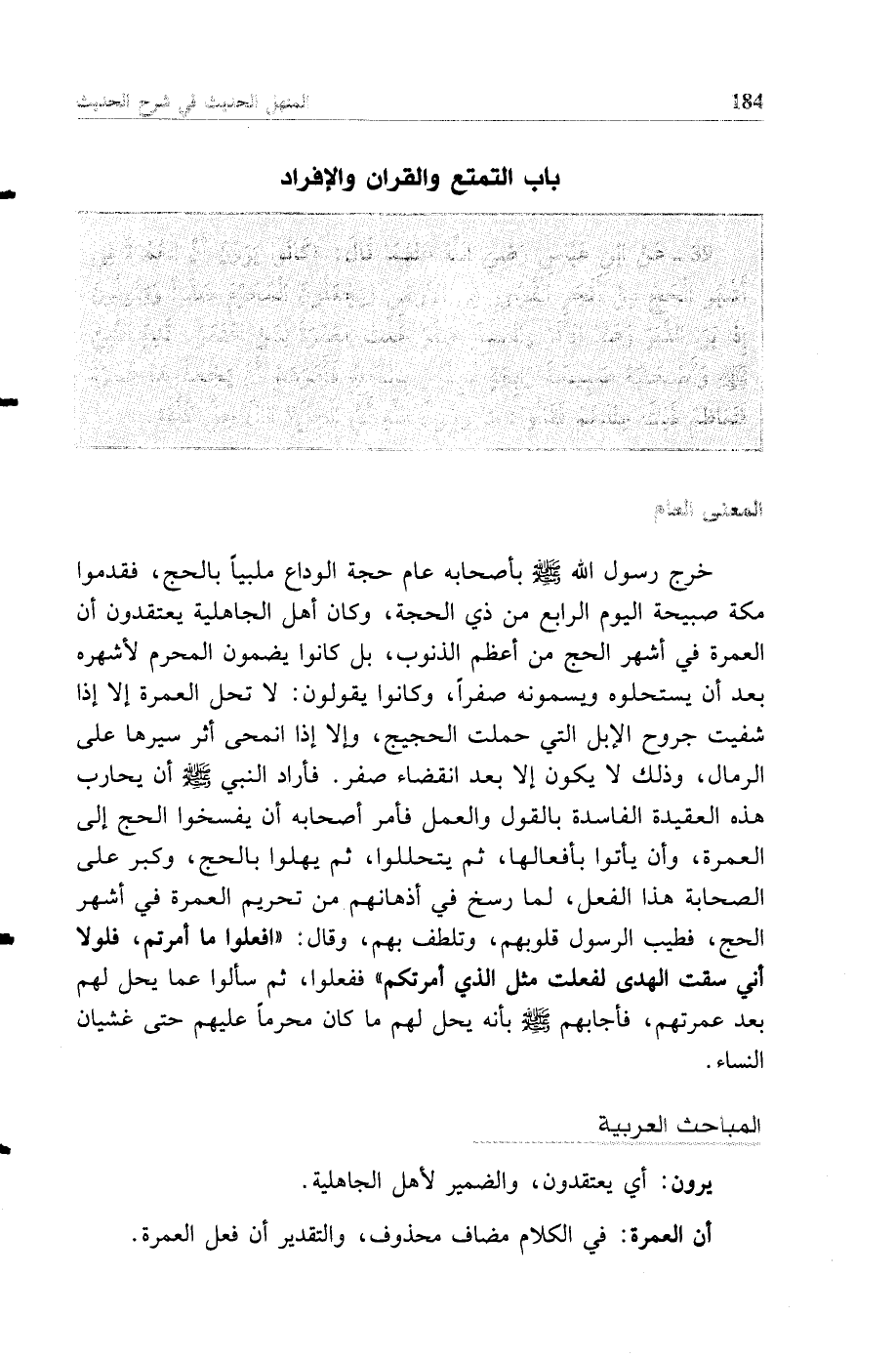 39 - عن ابن عباس رضي الله عنهما قال: "كانوا يرون أن العمرة في أشهر الحج من أفجر الفجور في الأرض ويجعلون المحرم صفرا ويقولون إذا برا الدبر وعفا الأثر وانسلخ صفر حلت العمرة لمن اعتمر قدم النبي صلى الله عليه وسلم وأصحابه صبيحة رابعة مهلين بالحج فأمرهم أن يجعلوها عمرة فتعاظم ذلك عندهم فقالوا: يا رسول الله أي الحل قال حل كله".