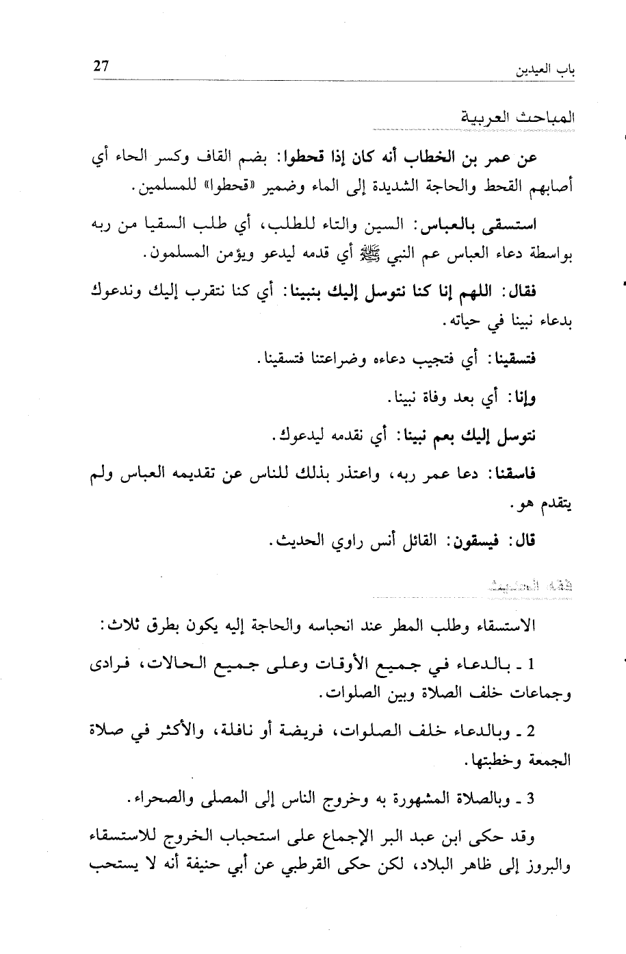 الاستسقاء وطلب المطر عند انحباسه والحاجة إليه يكون بطرق ثلاث