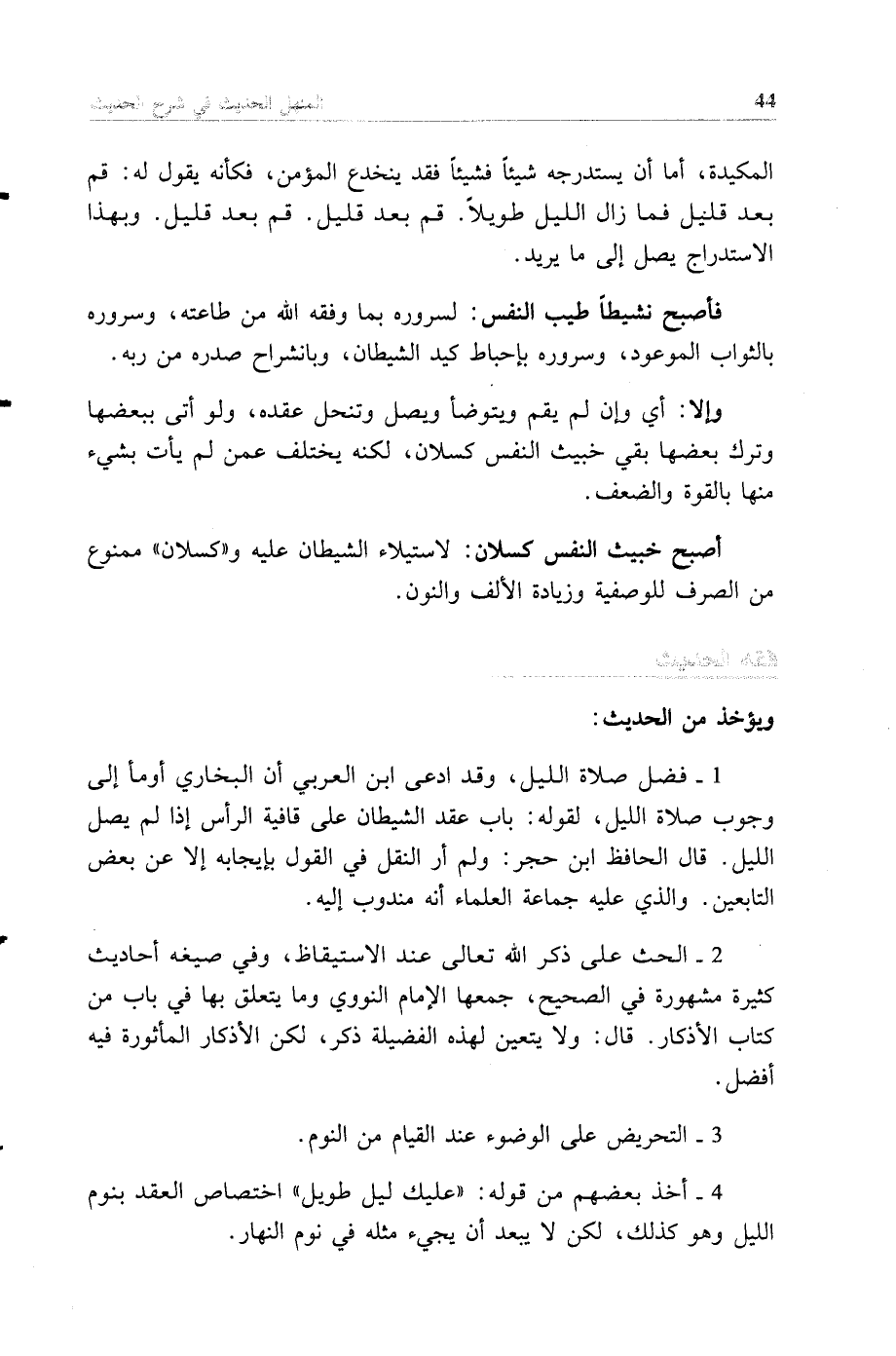 (أصبح خبيث النفس كسلان) لاستيلاء الشيطان عليه و"كسلان" ممنوع من الصرف للوصفية وزيادة الألف والنون