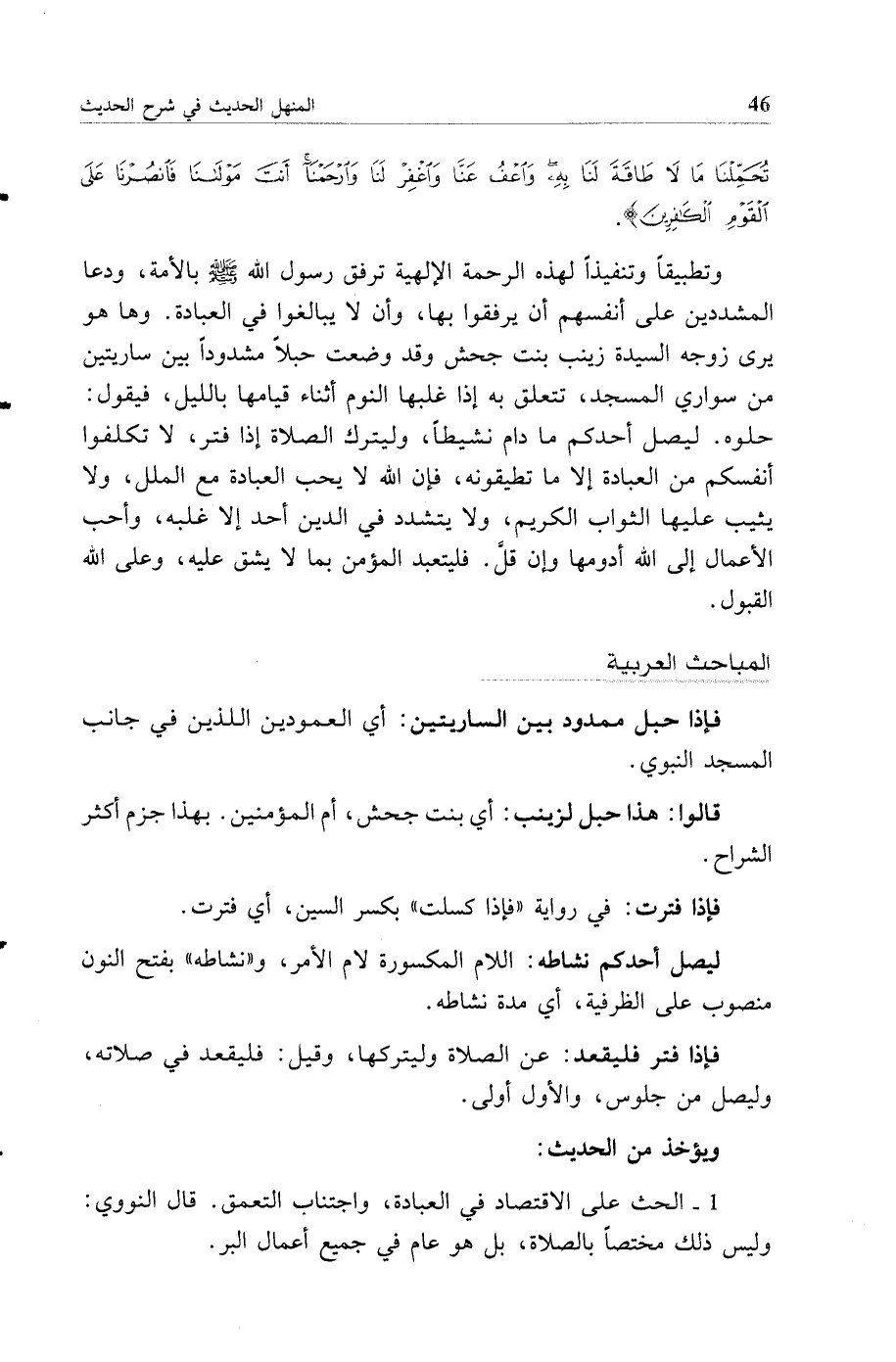 1 - الحث على الاقتصاد في العبادة واجتناب التعمق قال النووي وليس ذلك مختصا بالصلاة بل هو عام في جميع أعمال البر