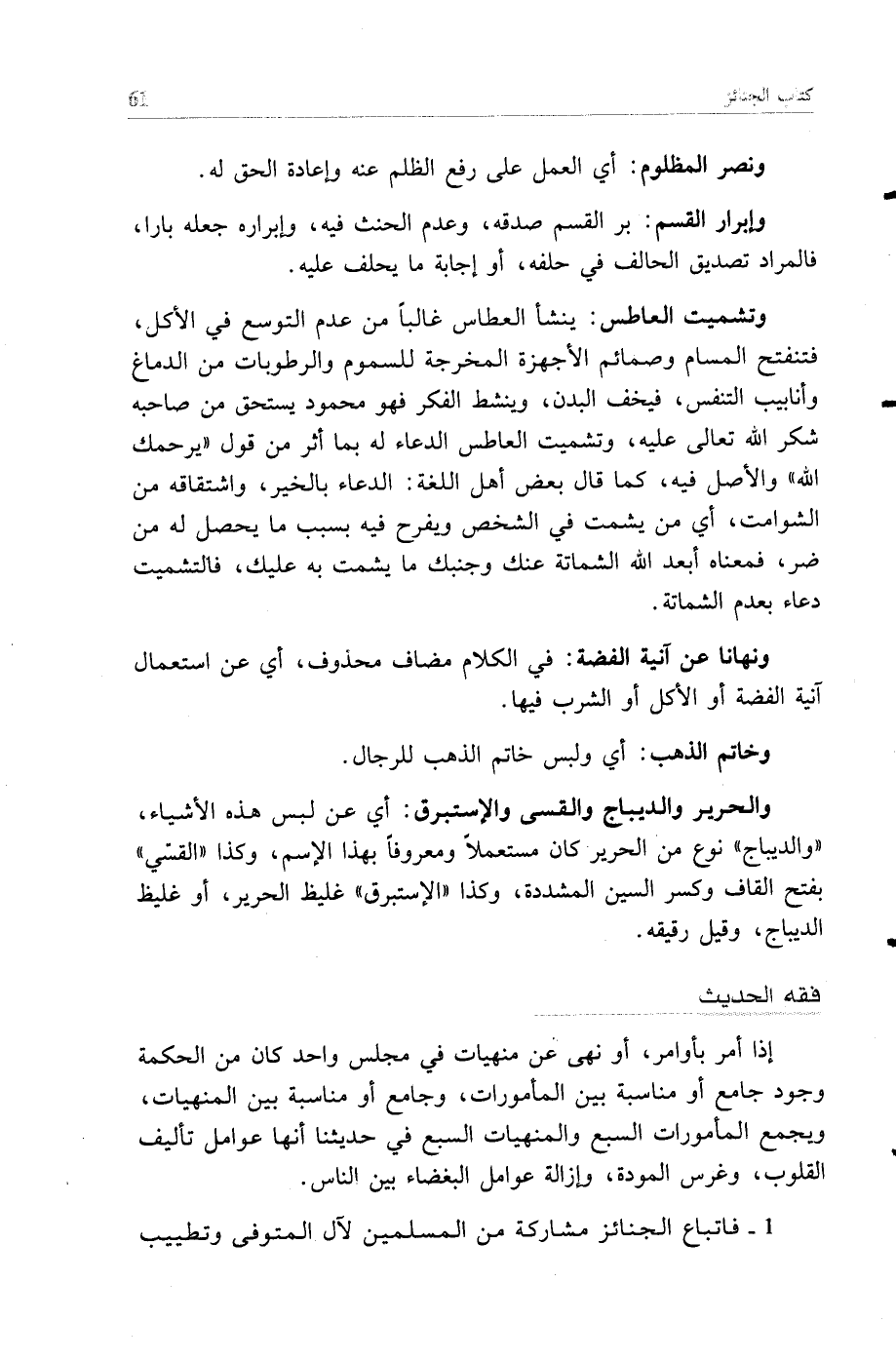 1 - فاتباع الجنائز مشاركة من المسلمين لآل المتوفي وتطييب