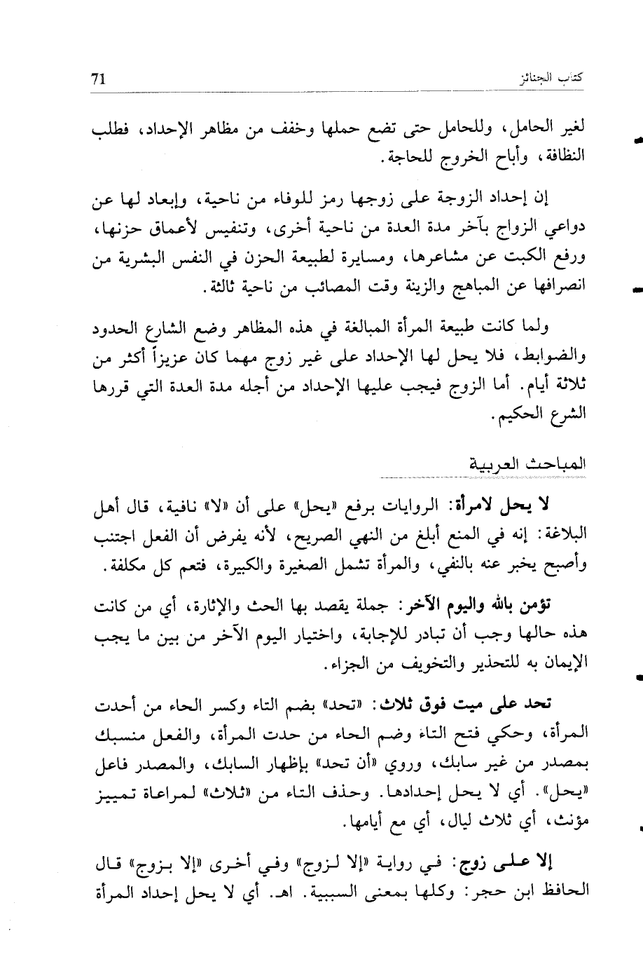 ولما كانت طبيعة المرأة المبالغة في هذه المظاهر وضع الشارع الحدود والضوابط فلا يحل لها الإحداد على غير زوج مهما كان عزيزا أكثر من ثلاثة أيام أما الزوج فيجب عليها الإحداد من أجله مدة العدة التي قررها الشرع الحكيم