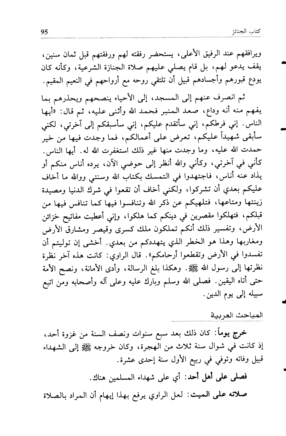 (خرج يوما) كان ذلك بعد سبع سنوات ونصف السنة من غزوة أحد إذ كانت في شوال سنة ثلاث من الهجرة وكان خروجه صلى الله عليه وسلم إلى الشهداء قبيل وفاته وتوفي في ربيع الأول سنة إحدى عشرة