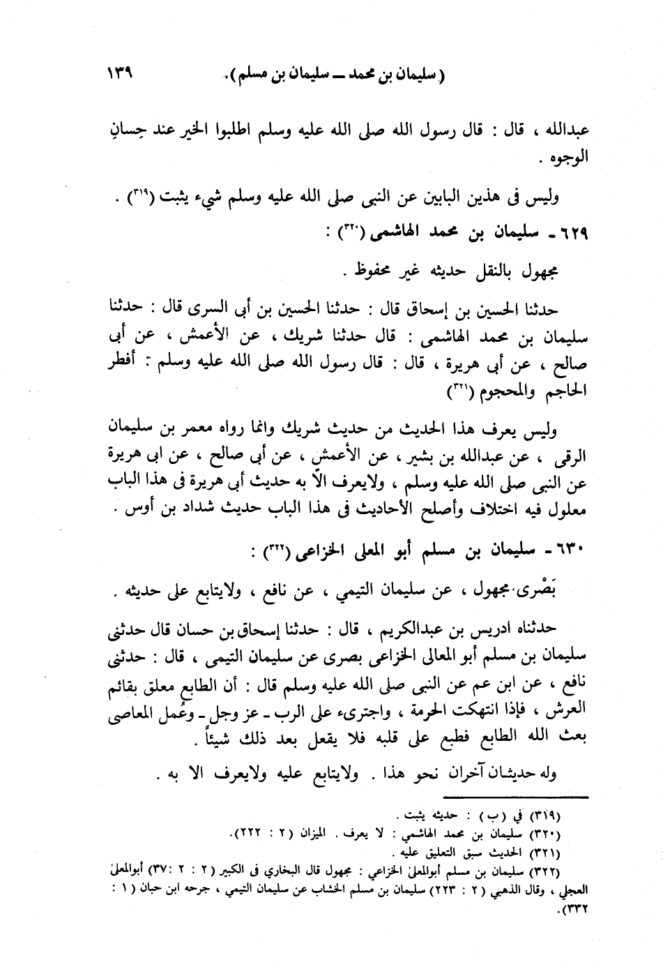 §629 - سُلَيْمَانُ بْنُ مُحَمَّدٍ الْهَاشِمِيُّ مَجْهُولٌ بِالنَّقْلِ، حَدِيثُهُ غَيْرُ مَحْفُوظٍ