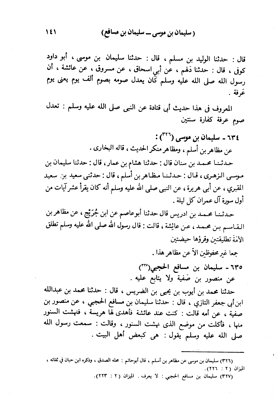 §634 - سُلَيْمَانُ بْنُ مُوسَى عَنْ مُظَاهِرِ بْنِ أَسْلَمَ، وَمُظَاهِرٌ، مُنْكَرُ الْحَدِيثِ، قَالَهُ الْبُخَارِيُّ. حَدَّثَنَا آدَمُ بْنُ مُوسَى، قَالَ: سَمِعْتُ الْبُخَارِيَّ، قَالَ: سُلَيْمَانُ بْنُ مُوسَى عَنْ مُظَاهِرِ بْنِ أَسْلَمَ، وَمُظَاهِرٌ، مُنْكَرُ الْحَدِيثِ