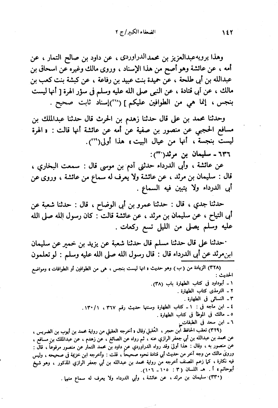 §636 - سُلَيْمَانُ بْنُ مَرْثَدٍ عَنْ عَائِشَةَ، وَأَبَى الدَّرْدَاءِ. حَدَّثَنِي آدَمُ بْنُ مُوسَى قَالَ: سَمِعْتُ الْبُخَارِيَّ قَالَ: سُلَيْمَانُ بْنُ مَرْثَدٍ، عَنْ عَائِشَةَ، وَلَا يُعْرَفُ لَهُ سَمَاعٌ مِنْ عَائِشَةَ، وَرَوَى عَنْ أَبِي الدَّرْدَاءِ وَلَا يَتَبَيَّنُ فِيهِ السَّمَاعُ