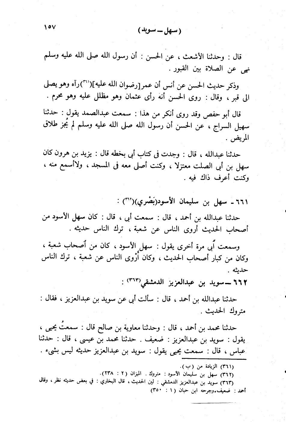 §661 - سَهْلُ بْنُ سُلَيْمَانَ الْأَسْوَدُ، بَصْرِيٌّ حَدَّثَنَا عَبْدُ اللَّهِ بْنُ أَحْمَدَ قَالَ: سَمِعْتُ أَبِي قَالَ: كَانَ سَهْلٌ الْأَسْوَدُ مِنْ أَصْحَابِ الْحَدِيثِ، أَرْوَى النَّاسَ عَنْ شُعْبَةَ، تَرَكَ النَّاسُ حَدِيثَهُ، وَسَمِعْتُ أَبِي مَرَّةً أُخْرَى يَقُولُ: سَهْلُ بْنُ الْأَسْوَدِ كَانَ مِنْ أَصْحَابِ شُعْبَةَ، وَكَانَ مِنْ كِبَارِ أَصْحَابِ الْحَدِيثِ، وَكَانَ أَرْوَى النَّاسِ عَنْ شُعْبَةَ، تَرَكَ النَّاسُ حَدِيثَهُ