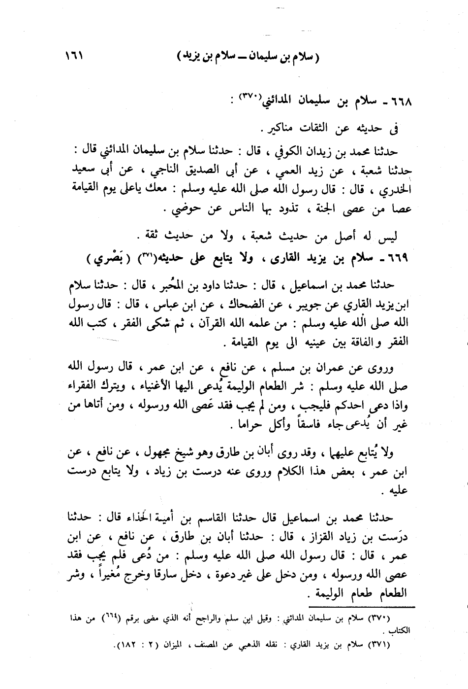 §668 - سَلَّامُ بْنُ سُلَيْمَانَ الْمَدَائِنِيُّ فِي حَدِيثِهِ عَنِ الثِّقَاتِ مَنَاكِيرُ