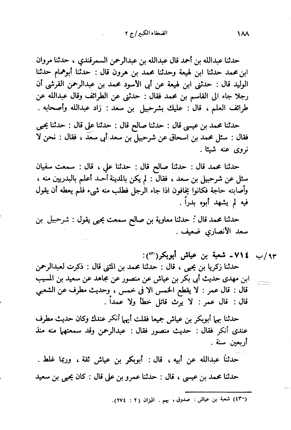 §714 - شُعْبَةُ بْنُ عَيَّاشٍ أَبُو بَكْرٍ يُقَالُ: اسْمُهُ شُعْبَةُ وَيُقَالُ: اسْمُهُ أَبُو بَكْرٍ