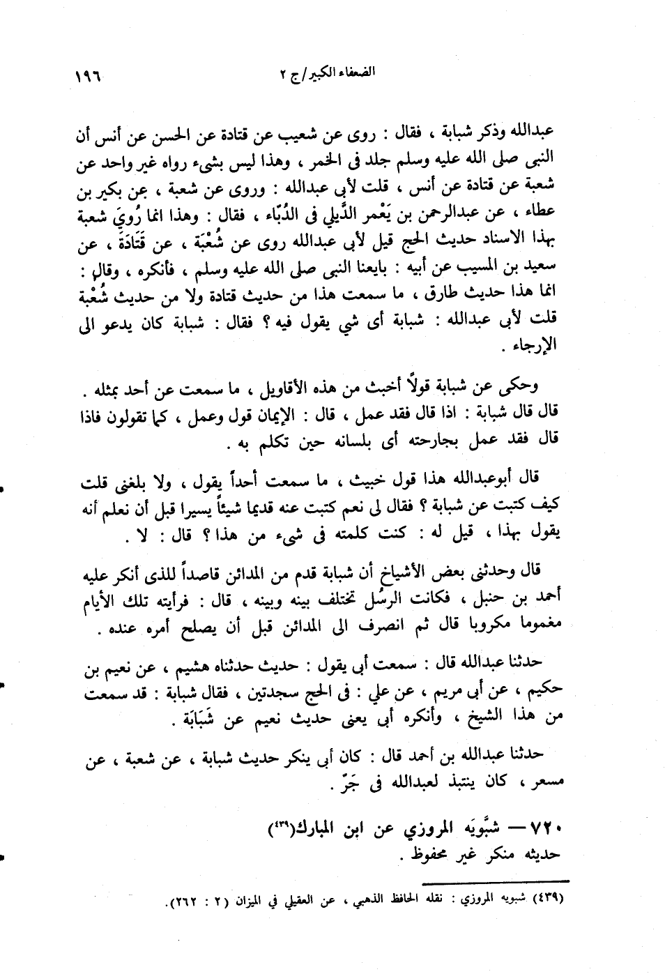 §720 - شَبَّوَيْهِ الْمَرْوَزِيُّ عَنِ ابْنِ الْمُبَارَكِ حَدِيثُ مُنْكَرٌ غَيْرُ مَحْفُوظٍ