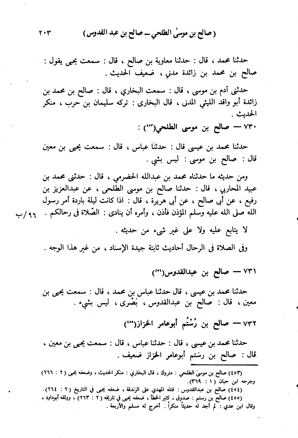 §732 - صَالِحُ بْنُ رُسْتُمَ أَبُو عَامِرٍ الْخَزَّازُ حَدَّثَنَا مُحَمَّدُ بْنُ عِيسَى قَالَ: حَدَّثَنَا عَبَّاسٌ قَالَ: سَمِعْتُ يَحْيَى بْنَ مَعِينٍ قَالَ: صَالِحُ بْنُ رُسْتُمَ أَبُو عَامِرٍ الْخَزَّازُ ضَعِيفٌ