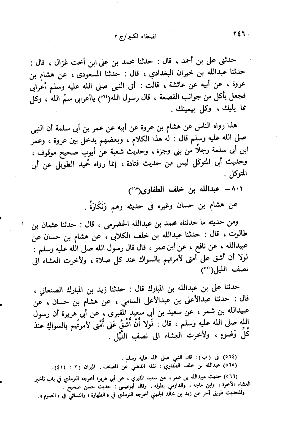 §801 - عَبْدُ اللَّهِ بْنُ خَلَفٍ الطُّغَاوِيُّ عَنْ هِشَامِ بْنِ حَسَّانَ وَغَيْرِهِ فِي حَدِيثِهِ وَهْمٌ وَنَكَارَةٌ