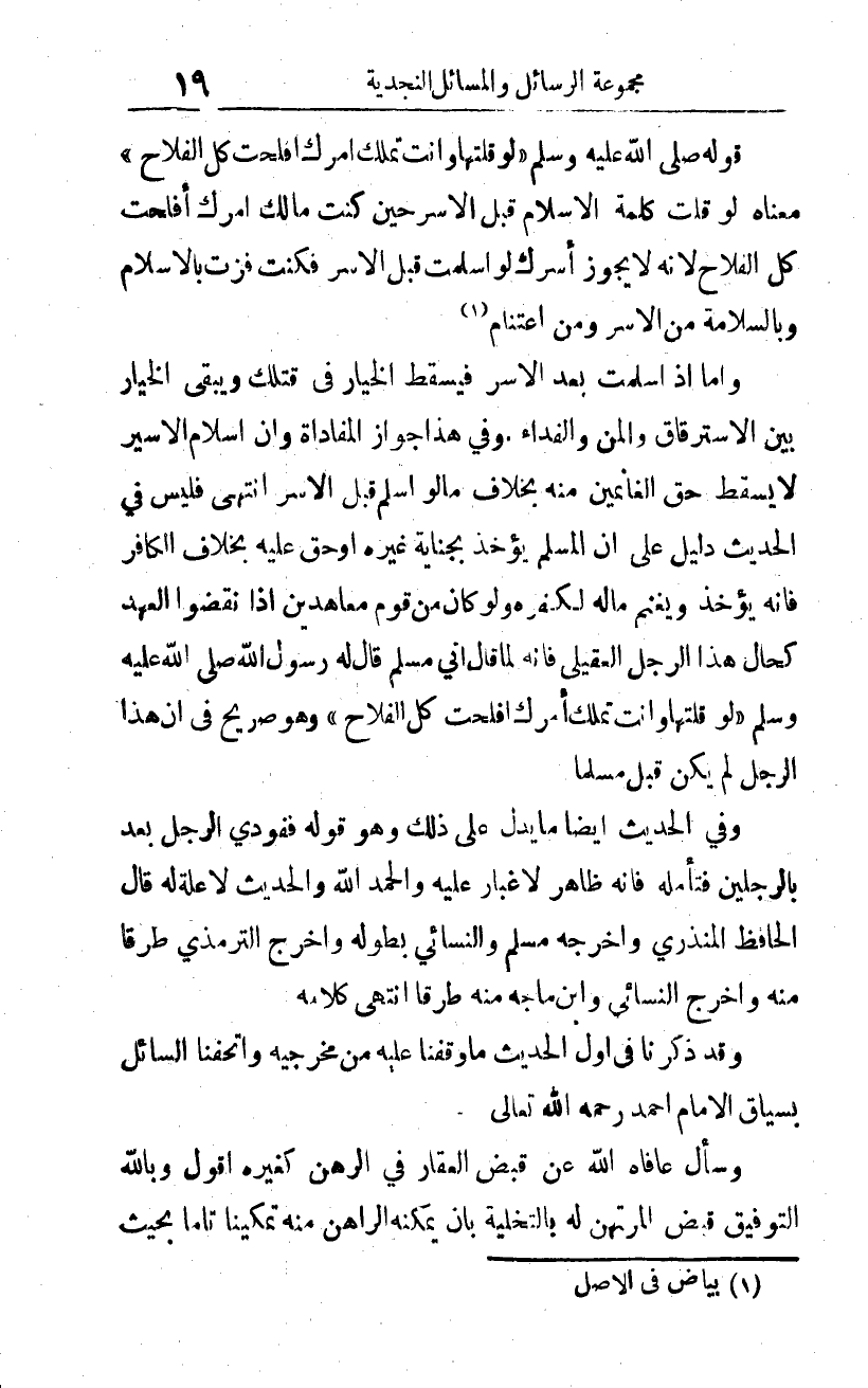 وفي الحديث أيضا ما يدل على ذلك، وهو قوله: ففودي الرجل بعد بالرجلين، فتأمله فإنه ظاهر لا غبار عليه -والحمد لله-. والحديث لا علة له، قال الحافظ المنذري: وأخرجه مسلم والنسائي بطوله، وأخرج الترمذي طرقا منه، وأخرج النسائي وابن ماجه منه طرقا. انتهى كلامه. وقد ذكرنا في أول الحديث ما وقفنا عليه من مخرجيه وأتحفنا السائل بسياق الإمام أحمد -رحمه الله تعالى-.