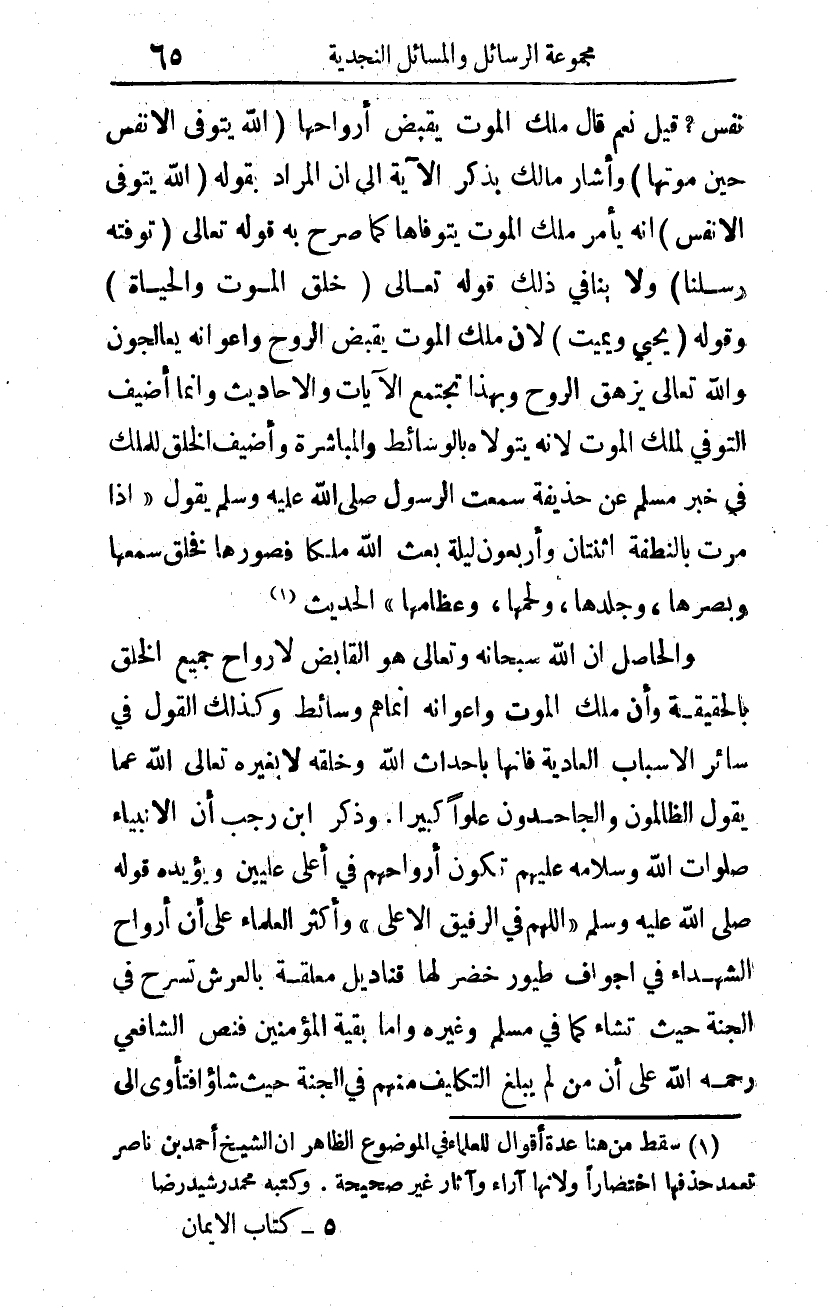 7 سقط من هنا عدة أقوال للعلماء في الموضوع؛ الظاهر أن الشيخ أحمد بن ناصر تعمد حذفها اختصارا؛ ولأنها آراء وآثار غير صحيحة. وكتبه محمد رشيد رضا.