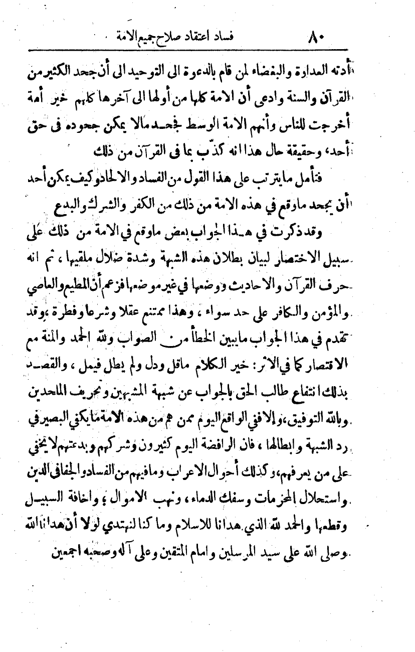 فتأمل ما يترتب على هذا القول من الفساد والإلحاد، وكيف يمكن أحد أن يجحد ما وقع في هذه الأمة من ذلك من الكفر والشرك والبدع؟