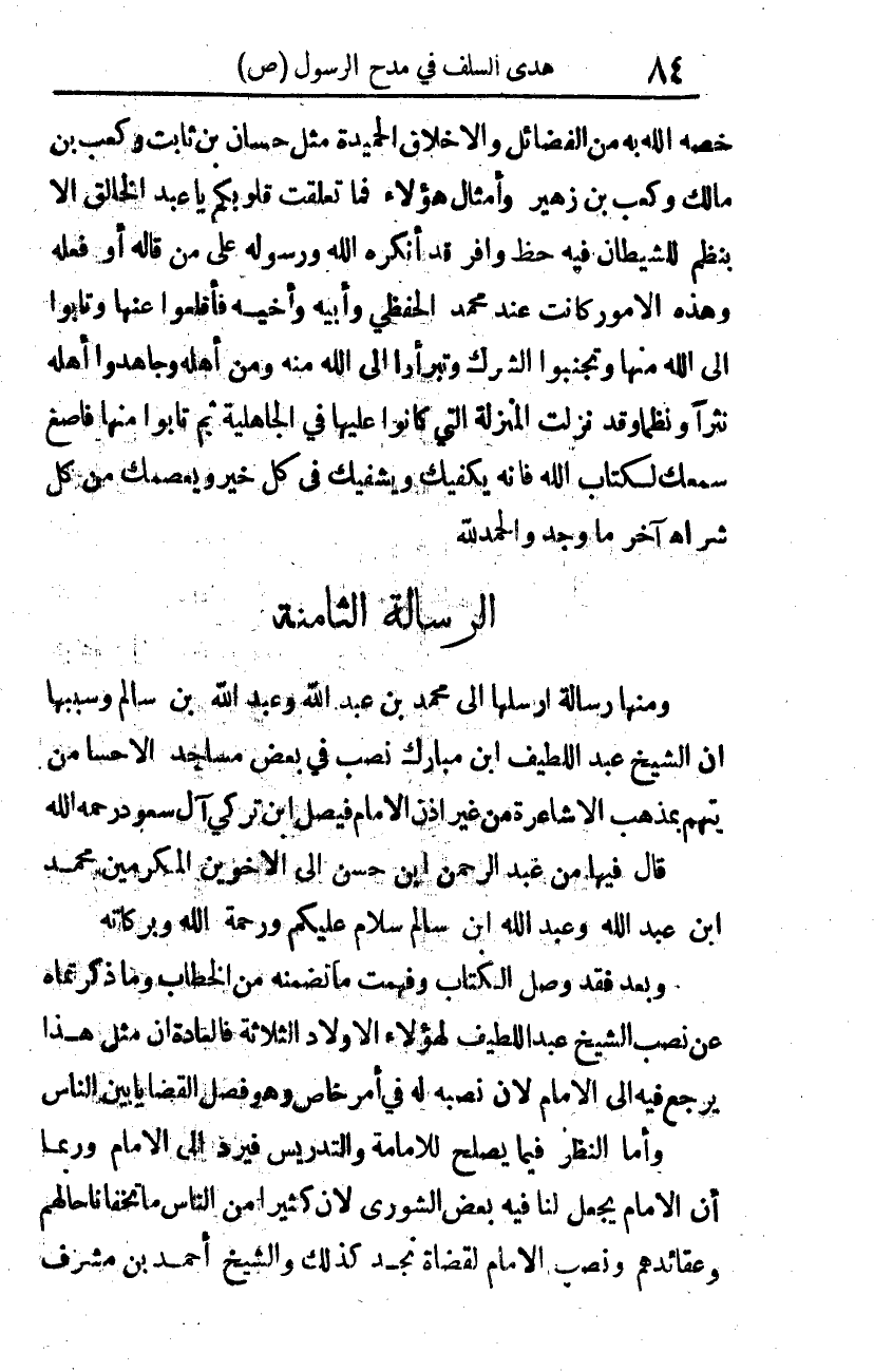 فقد وصل الكتاب، وفهمت ما تضمنه من الخطاب، وما ذكرتماه عن نصب الشيخ عبد اللطيف لهؤلاء الأولاد الثلاثة، فالعادة أن مثل هذا يرجع فيه إلى الإمام، لأن نصبه له في أمر خاص، وهو فصل القضايا بين الناس.