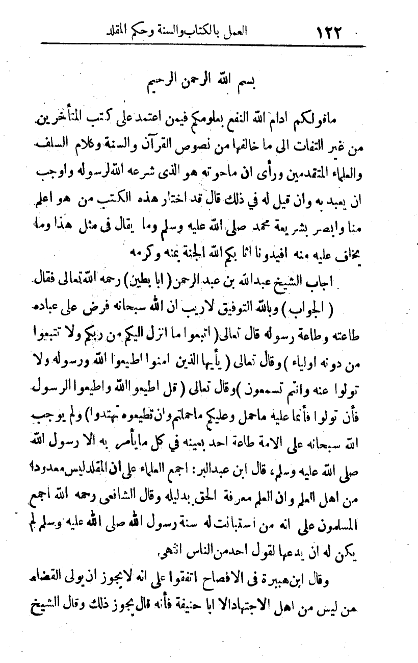 [الرسالة الثالثة: العمل بالكتاب والسنة]