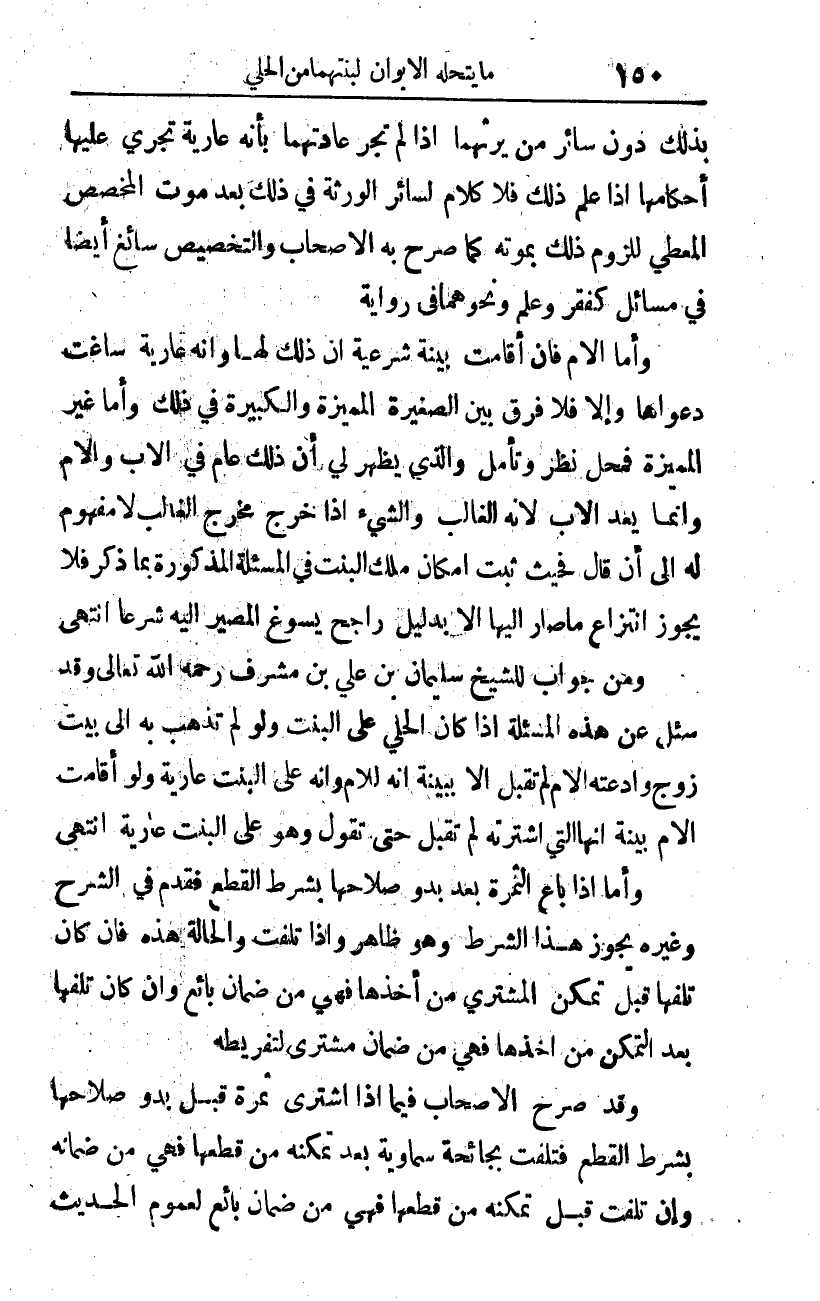 ومن جواب للشيخ سليمان بن علي بن مشرف -رحمه الله تعالى- وقد سئل عن هذه المسألة: إذا كان الحلي على البنت، ولو لم تذهب به إلى بيت زوج، وادعته الأم، لم تقبل إلا ببينة أنه للأم، وأنه على البنت عارية. ولو أقامت الأم بينة أنها التي اشترته، لم تقبل حتى تقول: وهو على البنت عارية. انتهى.