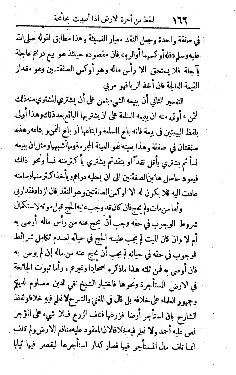 وأما ثبوت الجائحة في الأرض المستأجرة ونحوها، فاختيار الشيخ تقي الدين معلوم لديكم، وجمهور العلماء على خلافه. بل قال في المغني والشرح: لا نعلم فيه خلافا، ولفظ الشارح بأن استأجر أرضا، فزرعها، فتلف الزرع، فلا شيء على المؤجر، نص عليه أحمد، ولا نعلم فيه خلافا لأن المعقود عليه منافع الأرض، ولم تتلف، إنما تلف مال المستأجر فيها، فصار كدار استأجرها ليقصر فيها ثيابا،