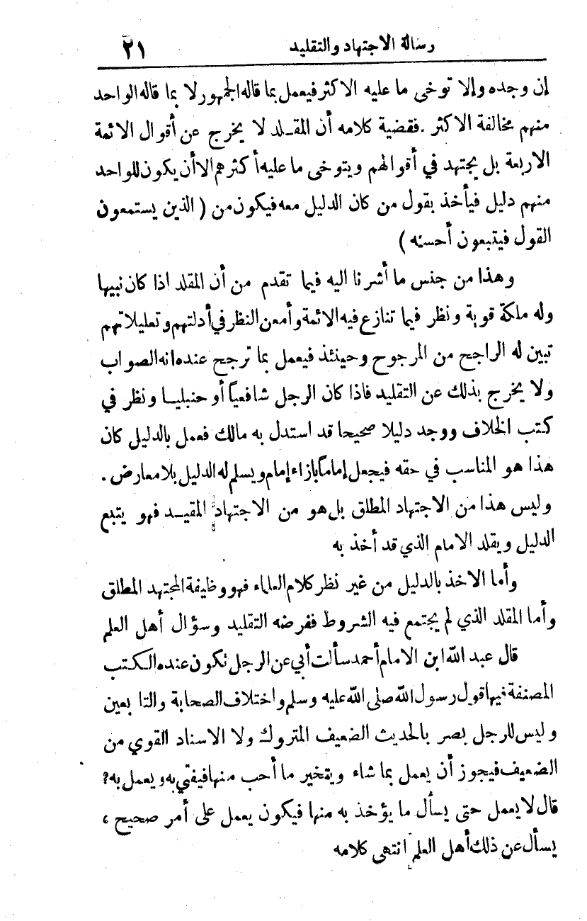 وأما الأخذ بالدليل من غير نظر كلام العلماء فهو وظيفة المجتهد المطلق، وأما المقلد الذي لم يجتمع فيه الشروط، ففرضه التقليد وسؤال أهل العلم.