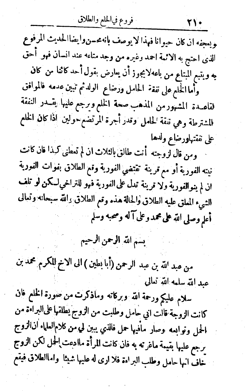 من عبد الله بن عبد الرحمن (أبا بطين) إلى الأخ المكرم محمد بن عبد الله -سلمه الله تعالى-.