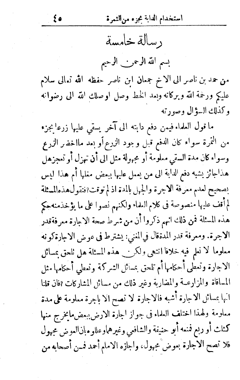 من حمد بن ناصر إلى الأخ جمعان بن ناصر -حفظه الله تعالى-، سلام عليكم ورحمة الله وبركاته.