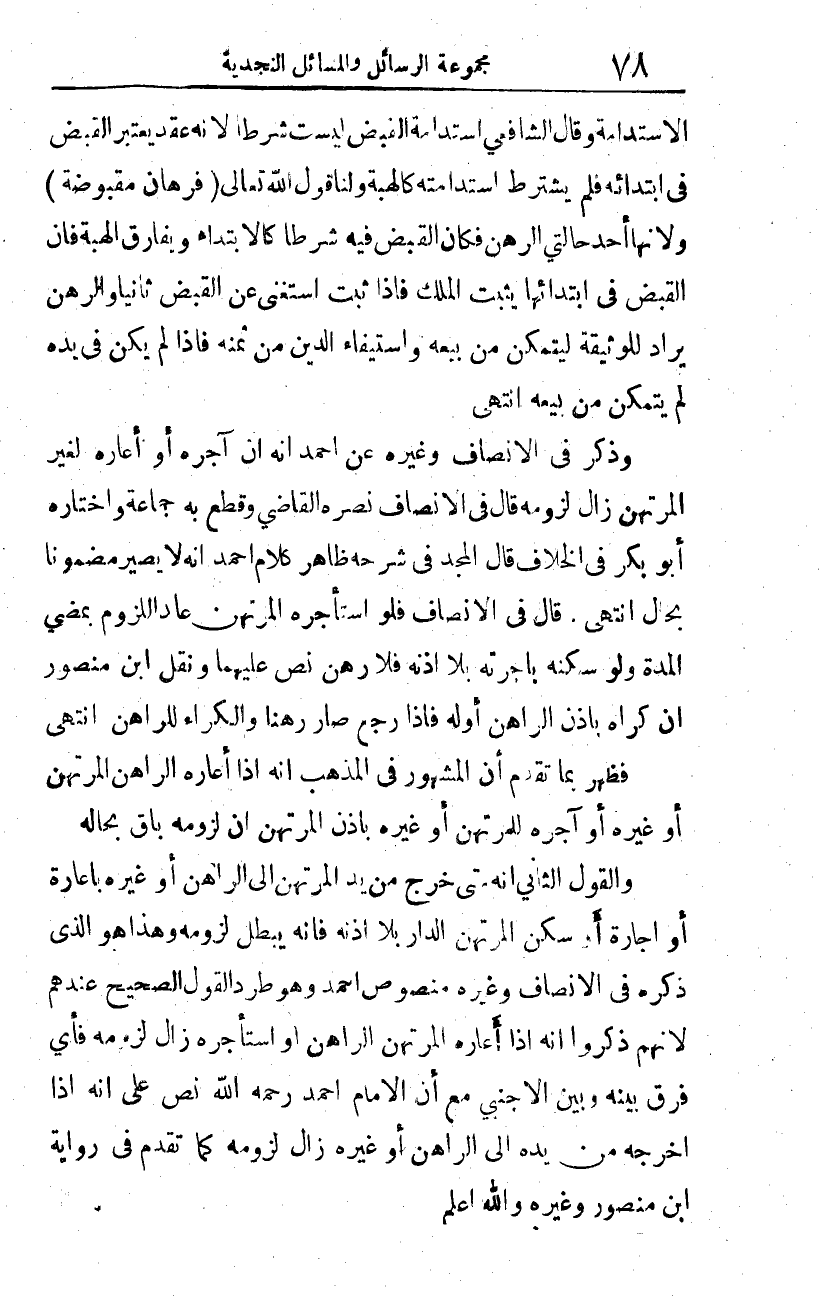 والقول الثاني: أنه متى خرج من يد المرتهن إلى الراهن أو غيره بإعارة أو إجارة، أو سكن المرتهن الدار بلا إذنه، فإنه يبطل لزومه، وهذا هو الذي ذكره في الإنصاف وغيره، منصوص أحمد، وهو طرد القول الصحيح عندهم، لأنهم ذكروا أنه إذا أعاره المرتهن الراهن أو استأجره زال لزومه، فأي فرق بينه وبين الأجنبي؟ مع أن الإمام أحمد -رحمه الله- نص على أنه إذا أخرجه من يده إلى الراهن أو غيره زال لزومه، كما تقدم في رواية ابن منصور وغيره. والله أعلم.